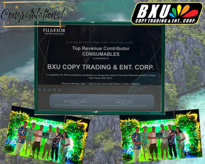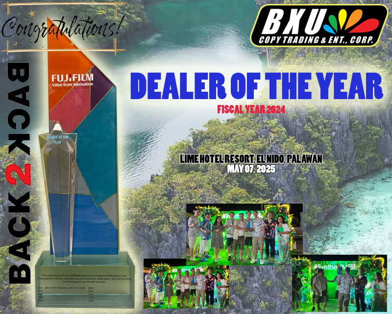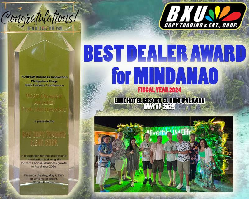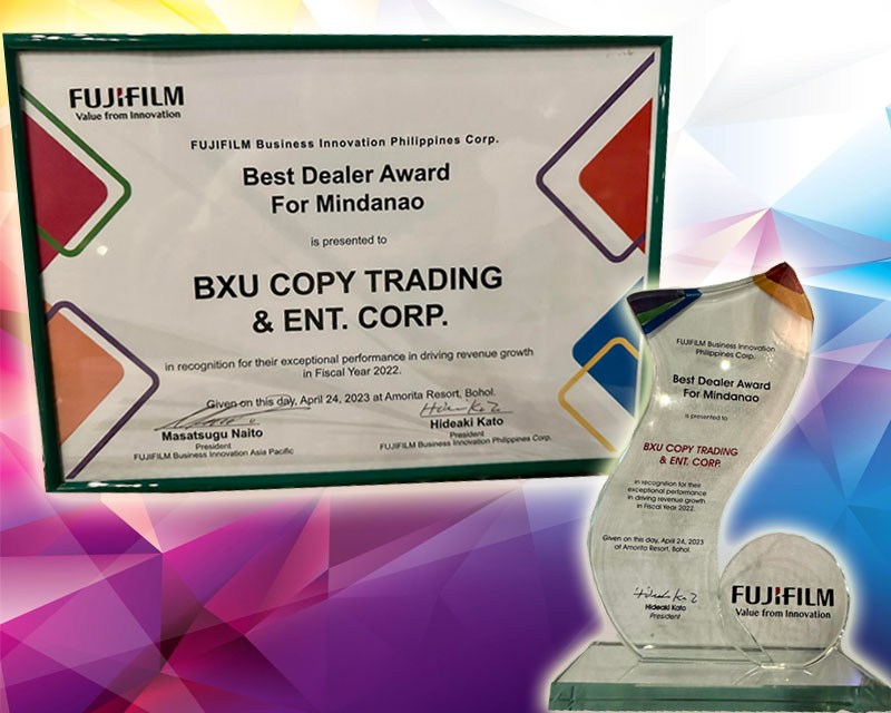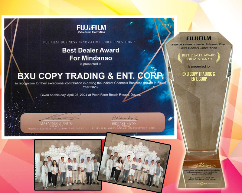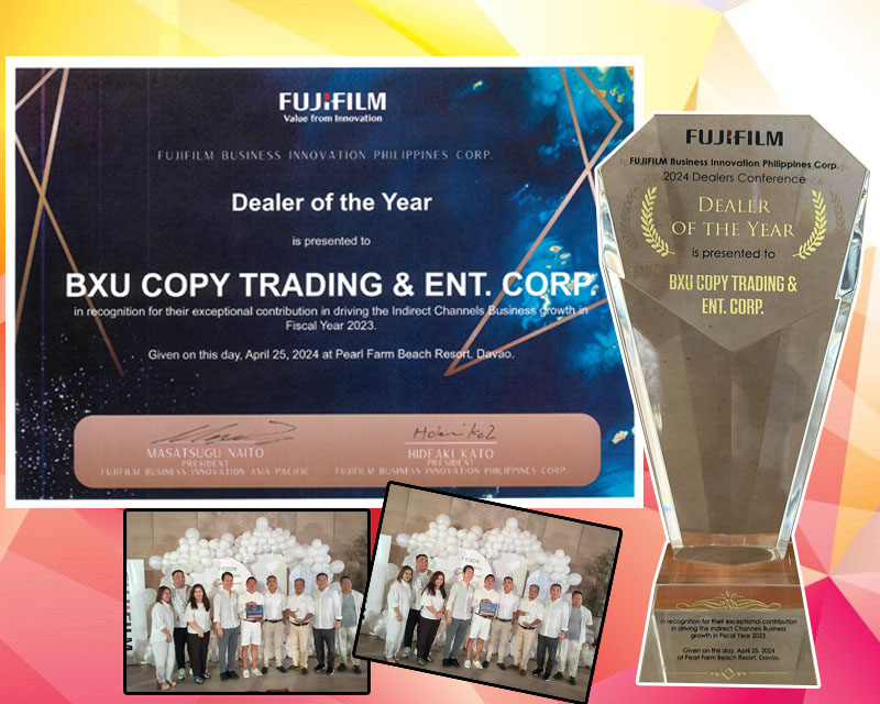 BXU Copy Trading & Ent. Corp. presented another award for being "Dealer of the Year" for Fiscal Year 2023. This first time in the history of FUJIFILM Business Innovation Philippines Corp. that this award is coming from Mindanao Area.