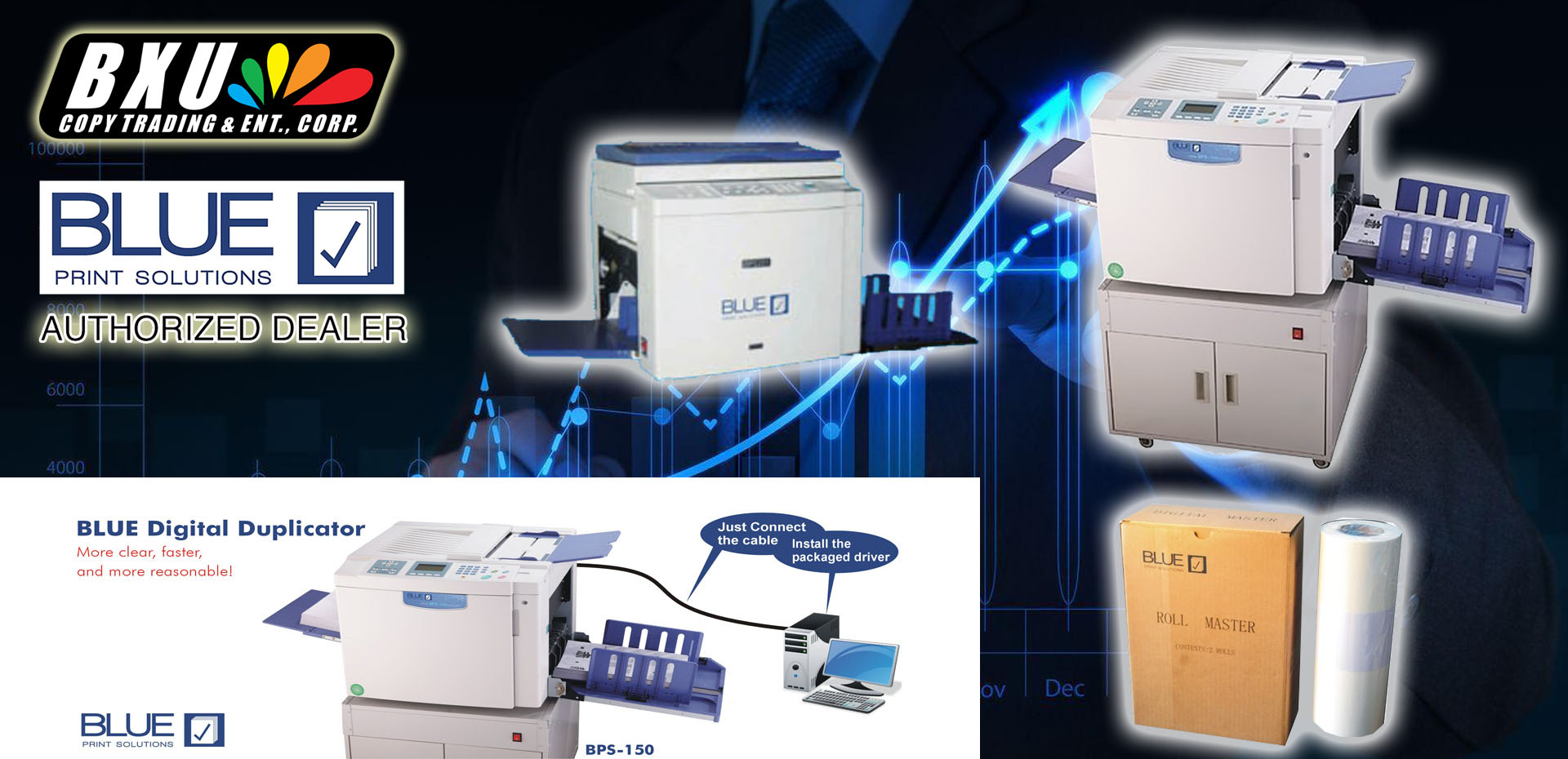 We are authorized dealer of duplicating machines like BLUE DIGITAL DUPLICATORS & RISO..